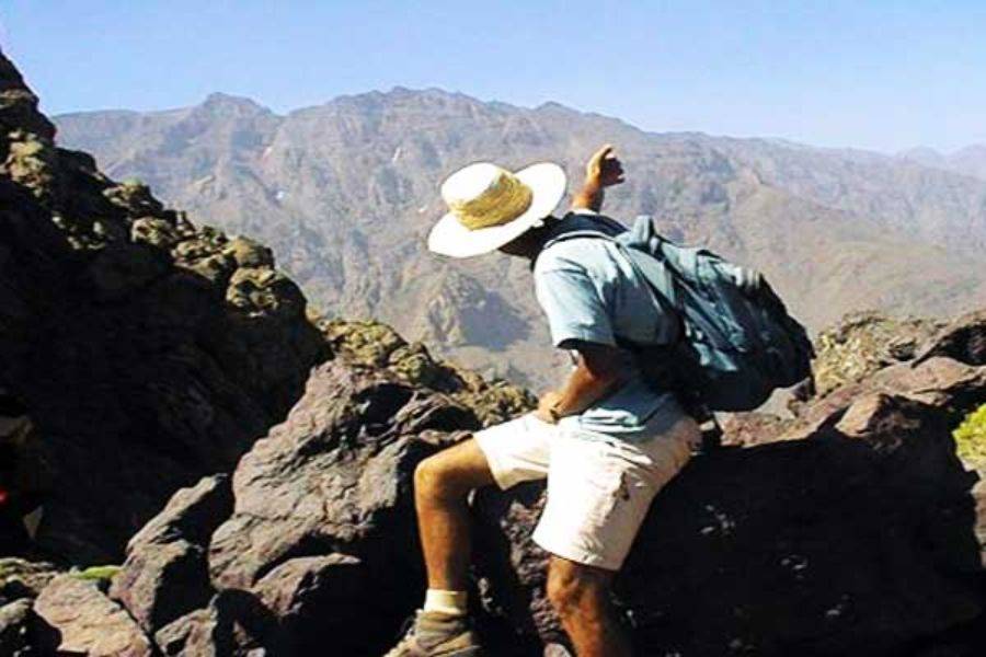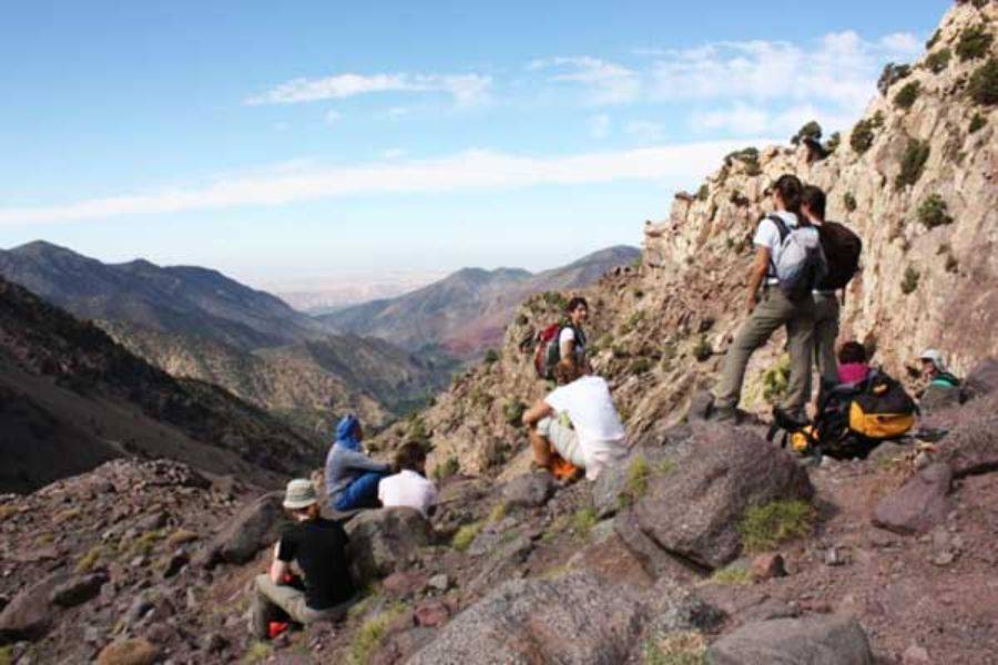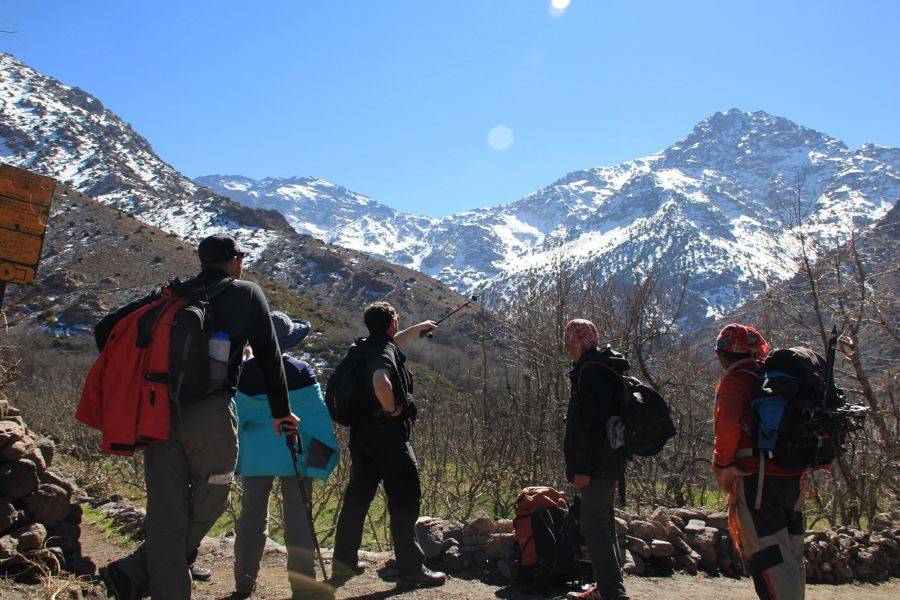 Your guided trek begins as you set off from Imlil. The trail winds through the scenic landscape of the Imlil Valley, where you will walk through cascading waterfalls and traditional Berber villages such as Ait Mizan, Targa, and Imoula.