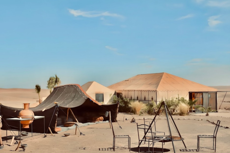 Be welcomed at the desert camp and enjoy an overnight stay in a typical bivouac.