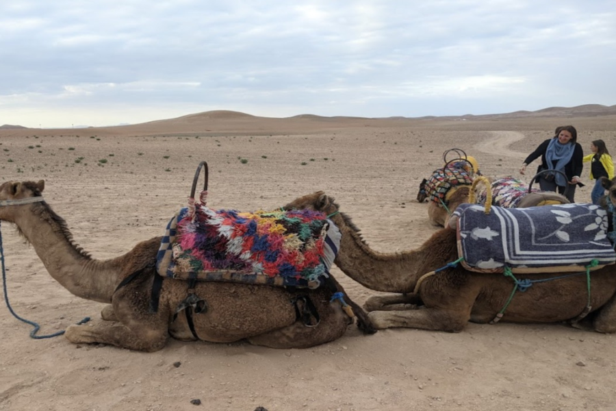 Ride a camel through amazing landscapes with the impending sunset ahead of you.