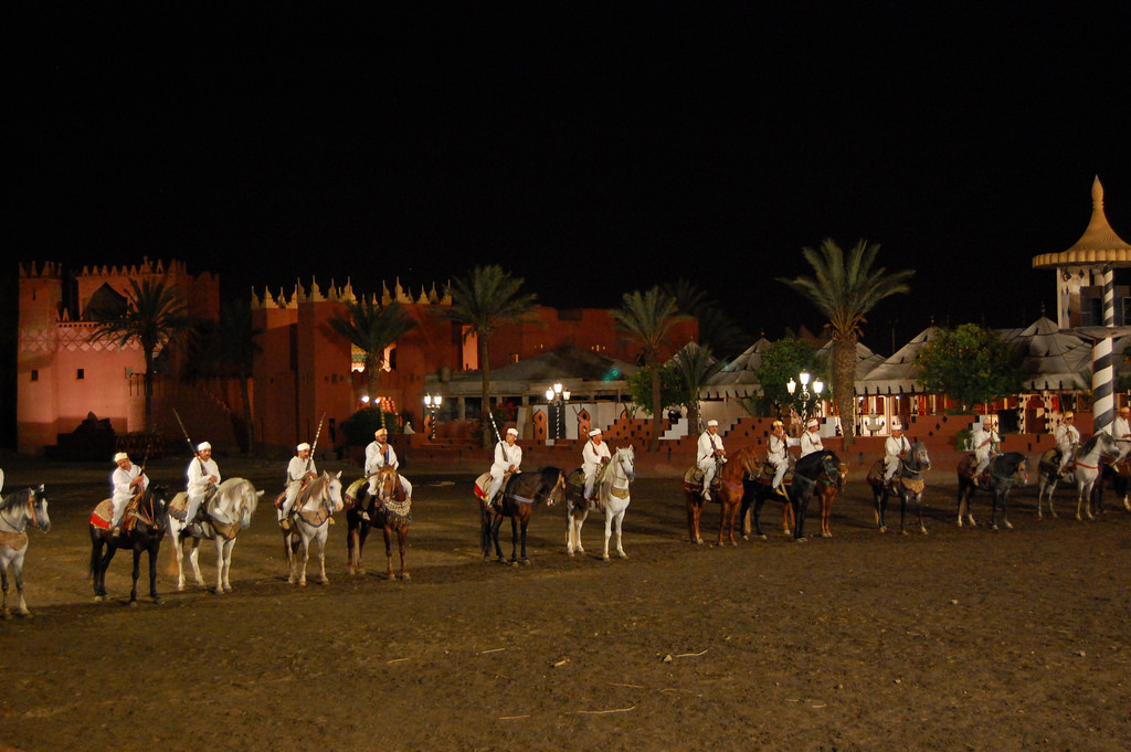 La Tbourida, a ét une technique de guerre pour surprendre l'ennemi, qu’est devenu aujourd’hui un spectacle national et international, présenté par des hommes et des femmes. Pour admirer ce magnifique spectacle, Excursions Marrakech vous invite à une soirée spectacle inédit Chez Ali, un complexe où vous profitez d’un dîner marocain et d’un spectacle de Fantasia magique.