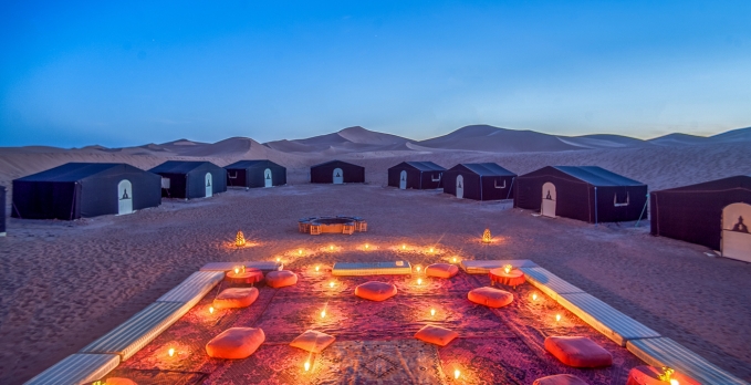 Admirez les dunes de Zagoura et le coucher du soleil avec une agréable balade à dos de dromadaire et passez la nuit dans une tente berbère.