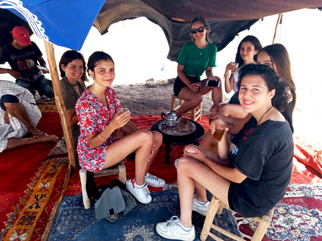 • Have a break time with a free mint tea and try the traditional desert clothes.