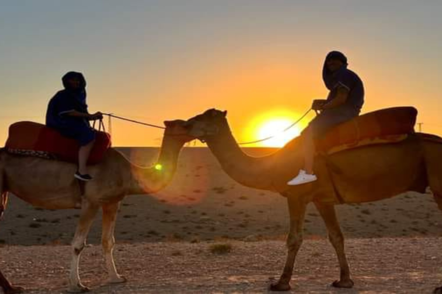 Enjoy an unforgettable sunset in the Agafay desert with camel trekking