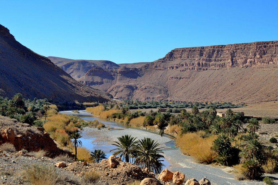 Leaving Merzouga with a great moment in the morning and with a delicious breakfast and sunrise. The staff will prepare a camel ride for you to reach Merzouga. And with a greeting, we will leave that beautiful and amazing place. We will be passing from Errissani to visit the traditional souk then we will head it to Erfoud where you will have a visit to the fossils and know more about the very old items in this village. Taste the Moroccan gastronomy while enjoying your lunch in one of the good restaurants within the road. See the oasis of Tafilalt until you arrive at Todra gorges, be amazed by the calm and wide nature in that place, and also enjoy by taking some photos between the two gorges. Next, head it to Tinighir which is a small Berber village, know more about the Berber culture and have a night stay in one of the comfortable riads with a delicious dinner.
