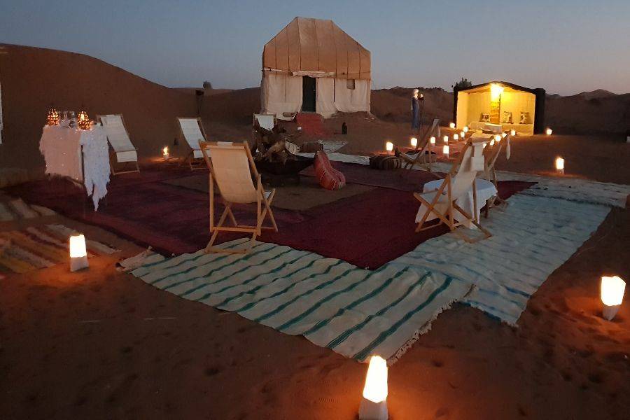 The first stop will be at Azrou, where we will enjoy a discovering walk to enjoy the forest and the barbary monkeys. We will reach Midelt which is a small beautiful and clean village famous for the production of apples. We will pass through the Ziz Valley which has many oasis beside the road. The second stop is at Errachidia, famous by Kaser Souk which is a traditional market and it is the oldest place in this city. Meet local people with mixture of different cultures between Berber and Arabic. We will stop to have lunch in that city before we take the road. Leaving Errachidia and passing through fascinating landscape, we will be passing by wide earth and splendid road with plenty of Oasis palms. Passing by Aoufouss then Erfoud to see the different type of mountains which looks very different from what mountains you have seen in Morocco. We will reach Errissani, a beautiful and welcoming city where we will be visiting Moulay Ali Cherif, which is a mausoleum with a calm and beautiful garden. Our last stop in the first day will be Merzouga, ride a camel to head it to the dunes of Erg Chebbi and meet the local Nomads with a great welcoming, enjoy the night with a beautiful scenery of traditional nomad instruments and dancing. Then have a wonderful night stay under the dark blue sky in the wide Moroccan desert.