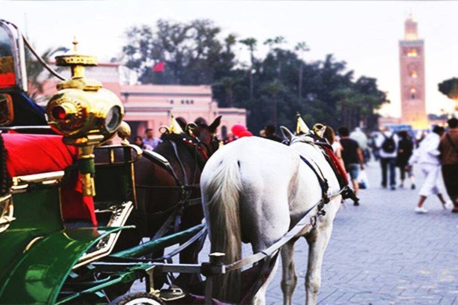 • Explore the Red Town by horse-drawn carriage passing through the famous historical places of Marrakech.