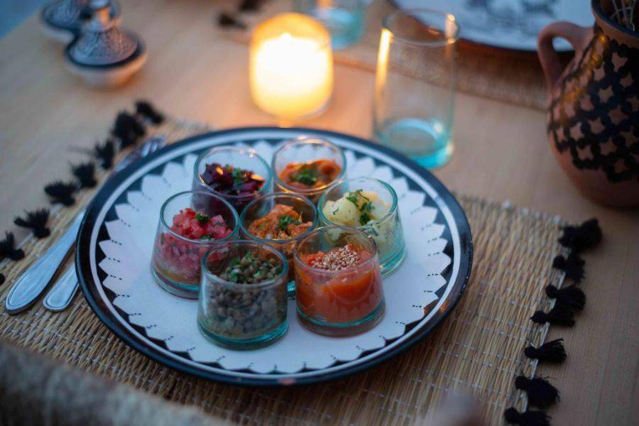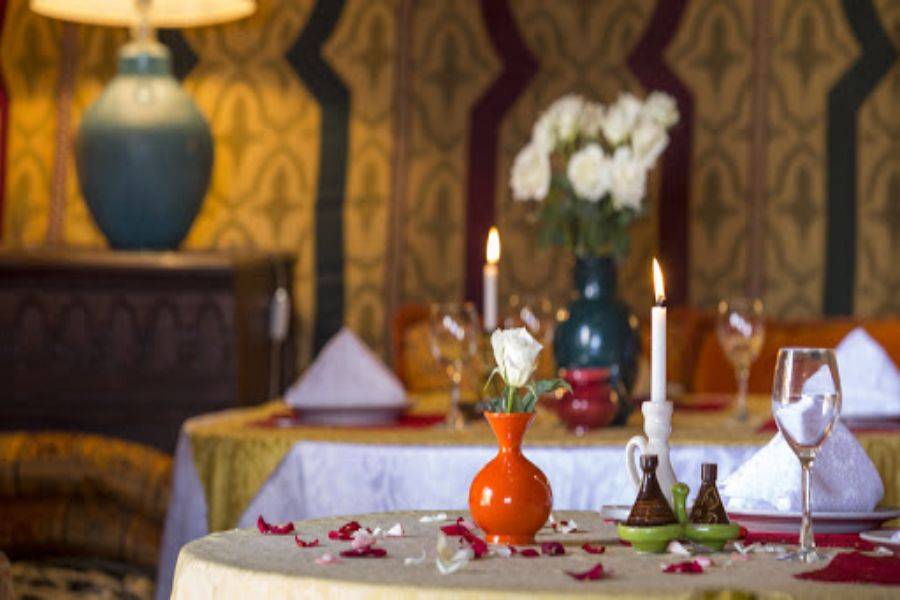 • Relax with dinner in a wonderful riad inside the Medina of Marrakech with the Moroccan gastronomy