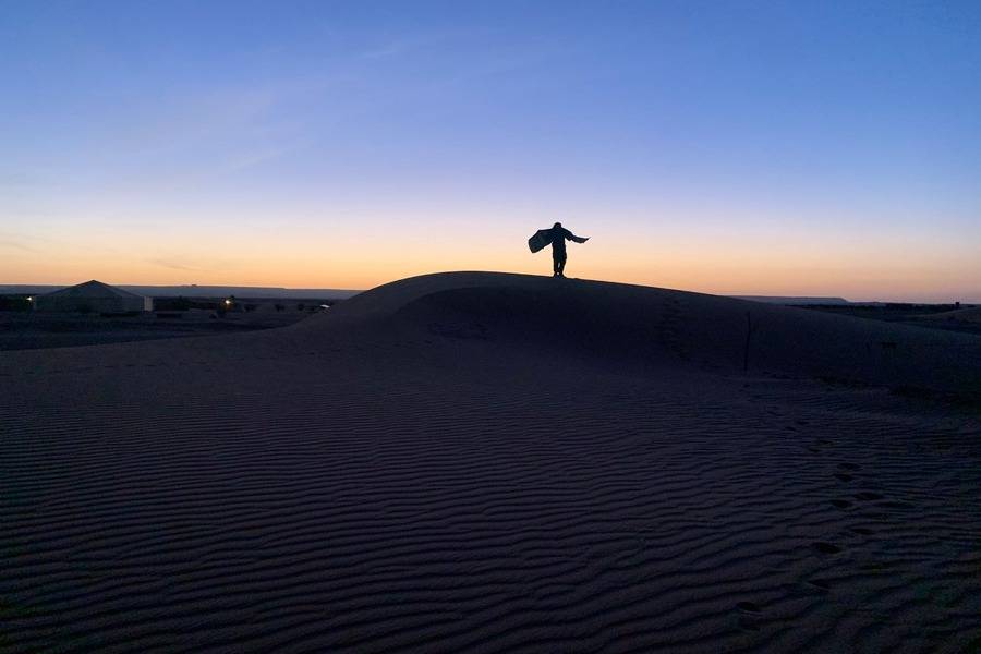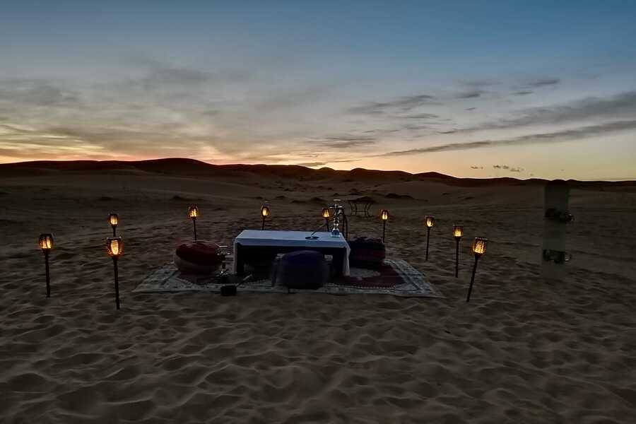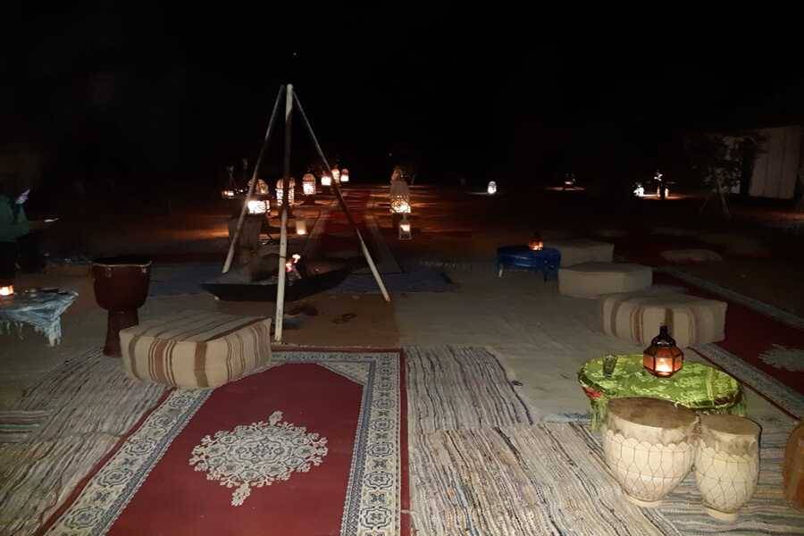 After some time to admire the sand dunes and the surrounding landscapes, get ready for a Moroccan dinner served under the stars next to the campfire. Late at night, your local nomad hosts will be entertaining you with their local music & drums.