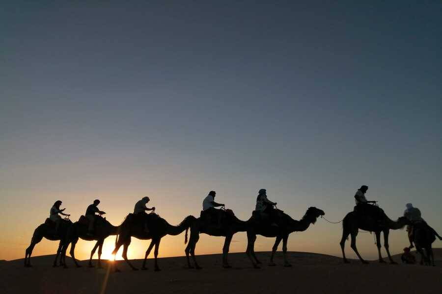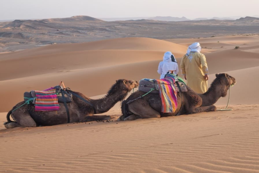 - Please wear jeans, trousers, or long shorts for the camel ride to have a comfortable trek in Erg Chebbi dunes.