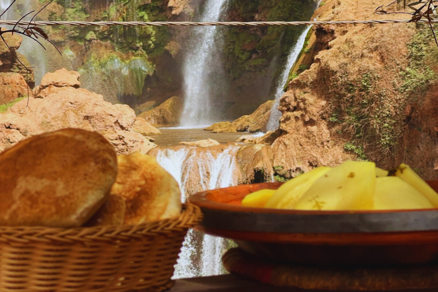 • Enjoy a taste of delicious Berber tagine in front of the Ouzoud waterfalls.