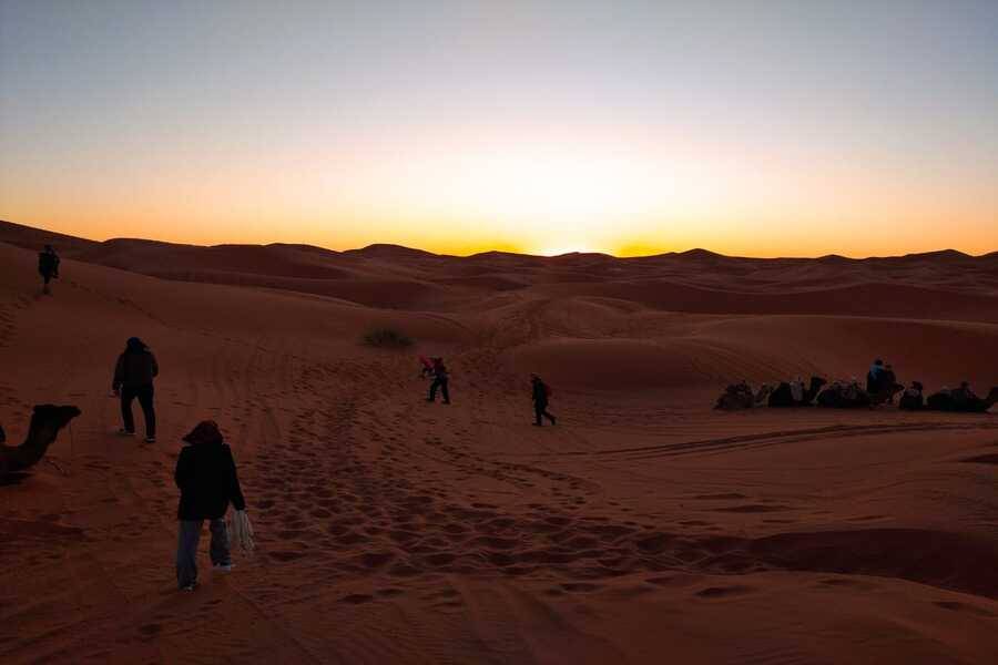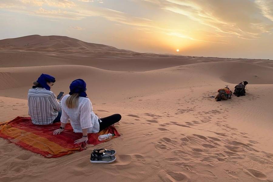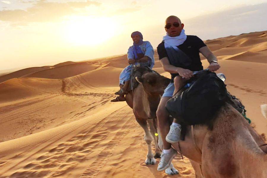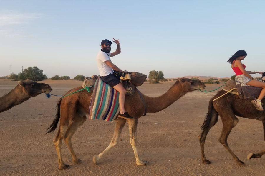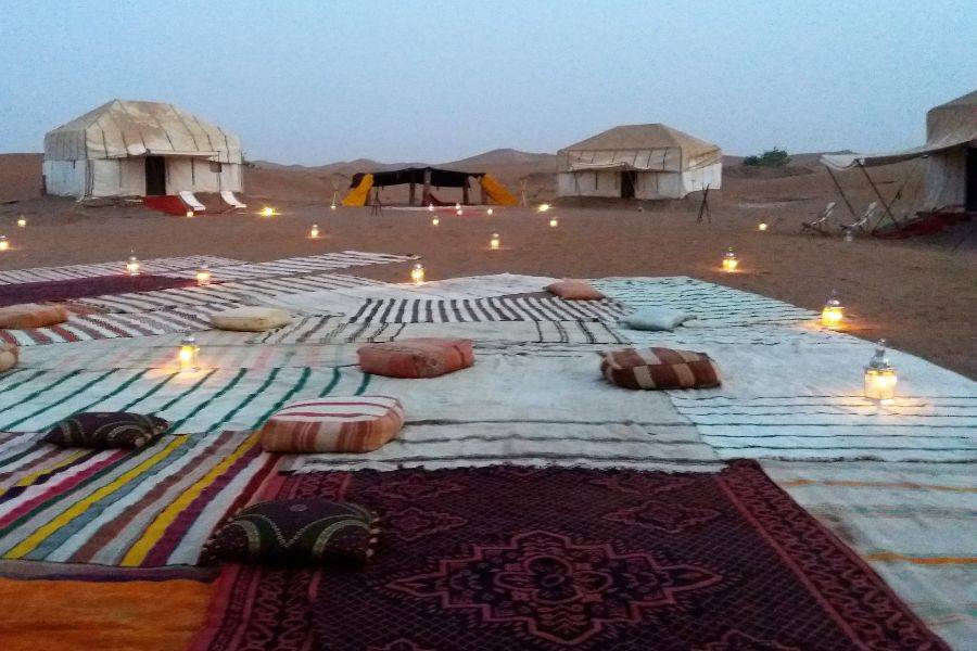 Having arrived in Merzouga, we will swap camels to immerse ourselves in the desert and make our way to Bedouin camp where we'll spend the night and enjoy a traditional Moroccan dinner.
